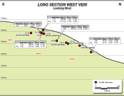 - Veins have been traced by drilling for strike lengths of up to 600 m, and through a vertical range of 280 m. All veins are open for extension along strike and to depth; and