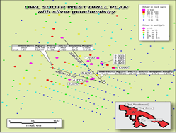 - A new high-grade drilling discovery was made at the Owl Southwest Zone, with bonanza-grades of 5,370 g/t silver (156.63 opt) over 0.34 m.