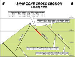 Regional exploration drilling has successfully tested several new high-grade epithermal silver occurrences within the district and confirmed that the 8 sq km Snap Zone silver-lead-zinc-tin soil geochemical anomaly has the potential to host Keg style bulk-tonnage mineralization.