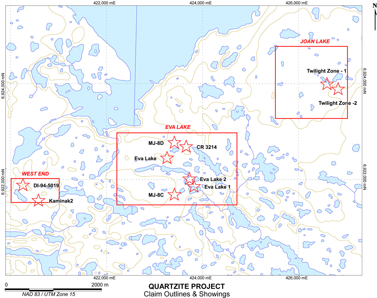 The Quartzite Project is near Kaminak Lake, 130 km SW of Rankin Inlet. Access is by fixed wing float or ski equipped aircraft from Rankin Inlet to either Happotiyik or Quartzite Lakes.