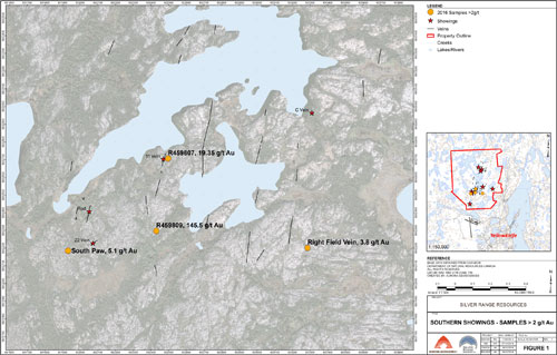 Four holes were drilled at the Rod Vein, three of which each intersected the vein and one was abandoned before hitting target depth. These results extended the known strike of the vein 35 m north of the edge of the 1979 production pit. Best results were 1.84 m @ 7.91 g/t Au from 15RD‐03 in the centre of the drill spread. The 1979 production pit was dewatered during the course of drilling operations and the Rod Vein was channel sampled in the north wall of the pit. All four channel samples returned grades in excess of 10 g/t Au with the best result being 1.20 m @ 17.27 g/t Au.