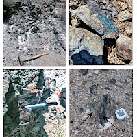 Mineralization in the district consists of specular and earthy hematite with limonite in brittle structures cutting Proterozoic gneiss. Gold reports with chalcopyrite and pyrite, largely oxidized to malachite, azurite, chalcocite and limonite. The mineralization occurs as vein-fill in northwest-striking, northeast-dipping anastomosing faults with dips varying from 30o to 90o. Individual vein-filled faults at larger mines in the area are from 50 to 150 m in length and occur in networks. Mineralization in the district is iron-oxide copper-gold (IOCG) in style, hosted in a detachment-fault related extensional normal faults along a mean trend of approximately 330o. A bulk tonnage copper-gold target might be present where converging and intersecting structures have created large damage zones.