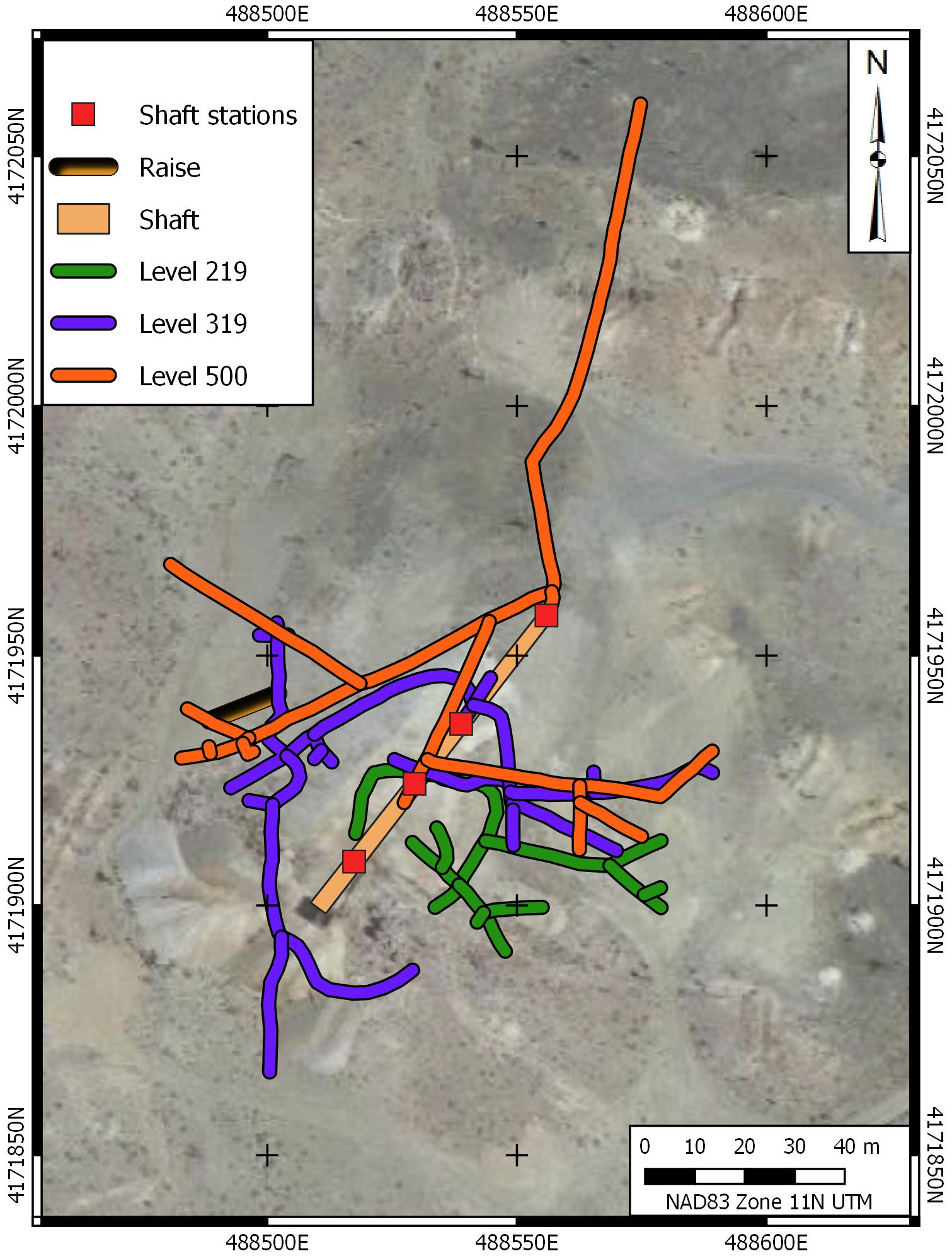 High grade gold mineralization was discovered at Goldfield in 1902 and mining was conducted continuously in the Goldfield Main area until 1952 and continued intermittently to this day at several small operations. Production to date from the district is approximately 4.2 M oz Au. Gold in the Goldfield District is found in residual (vuggy) silica ledges and replacements in permissible horizons in the Milltown Andesite, the Goldfield Dacite and underlying units. Quartz alunite alteration associated with the deposits is extensive and defines the structural controls on ore deposition. These include a circular fracture ring centred on a presumed buried intrusive body east of Goldfield and a linear feeder system connecting to the eastern margin of the circular fracture ring. The East Goldfield Project covers the linear fracture system.