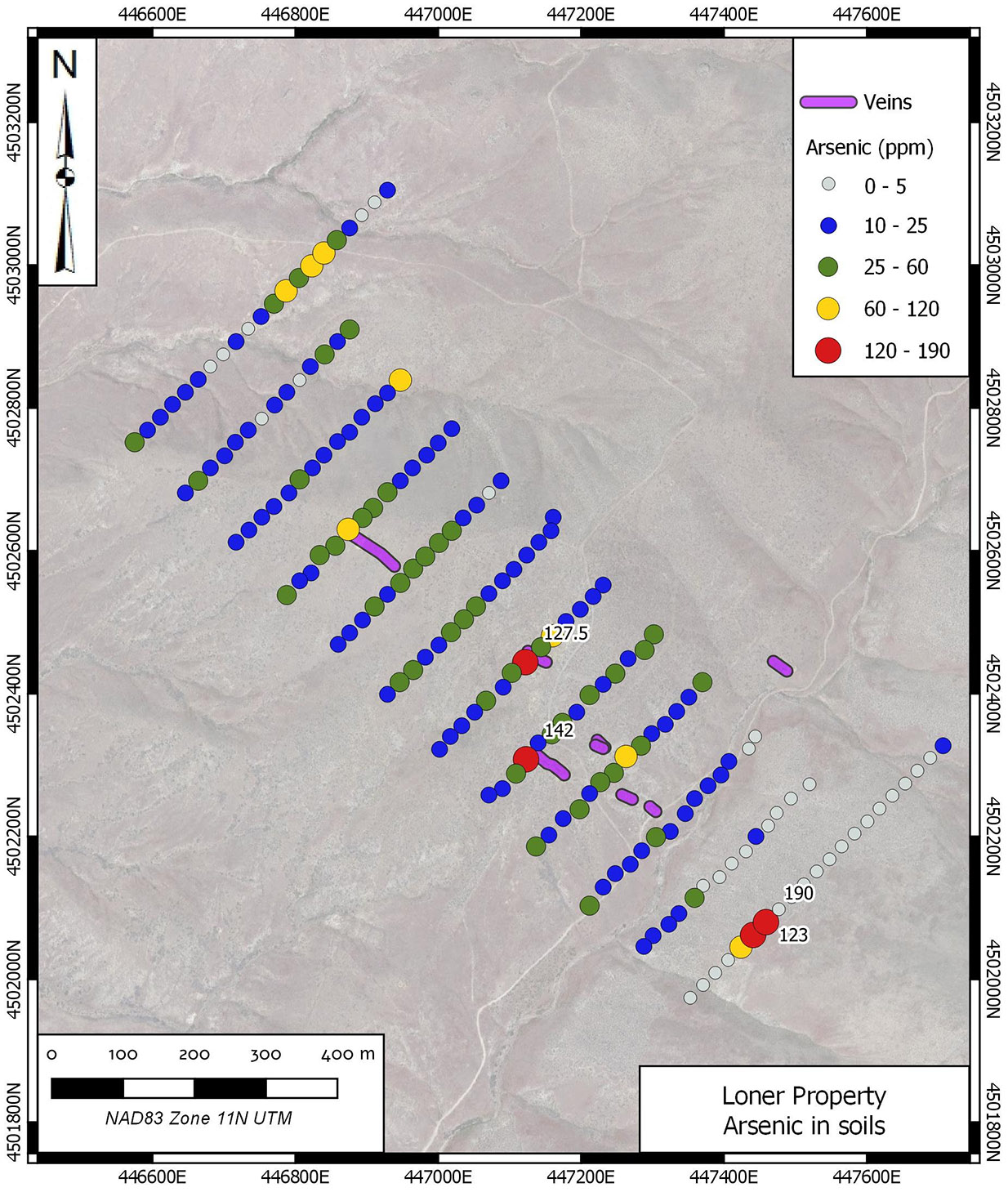 Silver Range intends to significantly expand the existing soil geochemical grid to define the limits of gold and arsenic anomalies. This would be followed by trenching to define drill targets