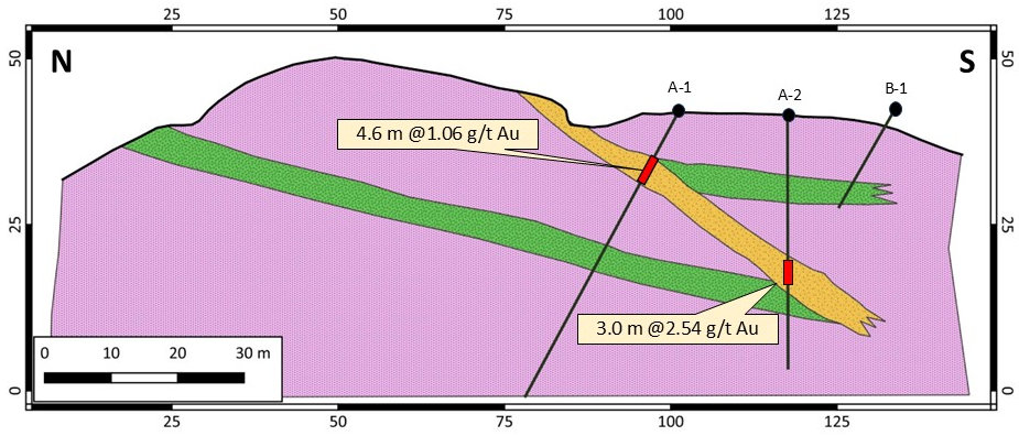 The principal showings on the Tesoro Property are denoted the Big Ben Mine and Lost Organ Grinder Mine, asserted without attribution to be the source of visible gold reported in area during the 1860’s. While there are old shafts and adits in the area, there is no information conclusively linking the two known occurrences to the reported lost mines.