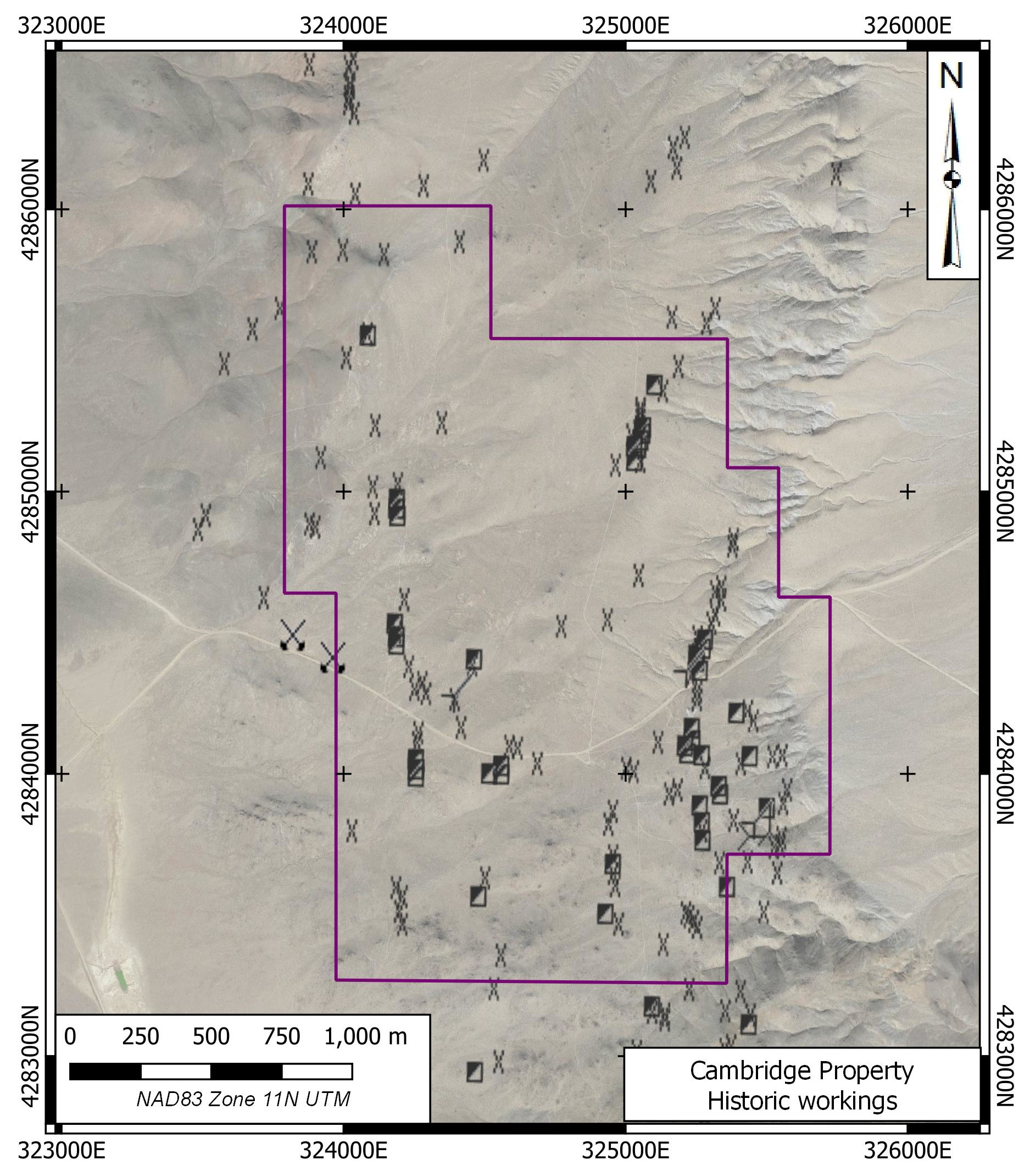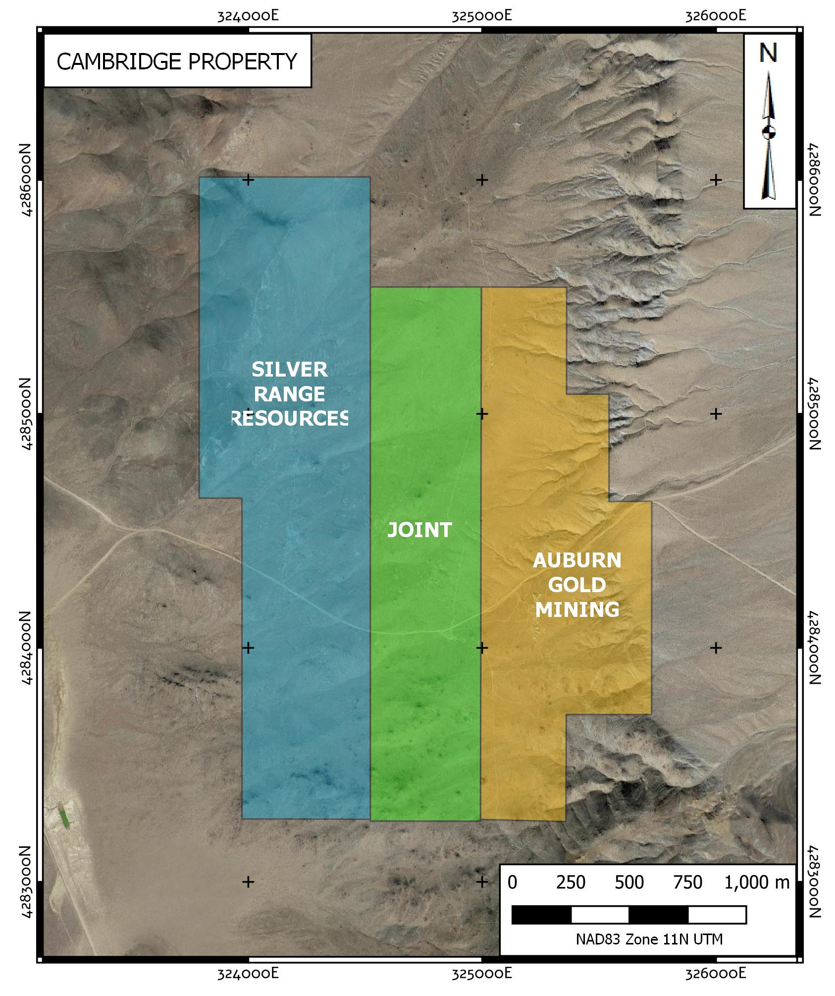 The Cambridge Property is located 33 km south of Yerington in Lyon County, NV. It consists of 51 Federal Lode Claims staked in Sections 25 & 36 Township 10N Range 26E, MDM and Sections 30, 31 Township 10N Range 27E, MDM. The property is readily accessible by road from State Route 3C and the East Walker Road which runs across the southern boundary of the claims. Silver Range staked the Pilot Lode workings adjacent to the Cambridge Mine in 2016 and Auburn Gold Mining LLC staked the Cambridge Mine in 2019. The two companies formed a joint-venture to consolidate and explore the district in 2020.